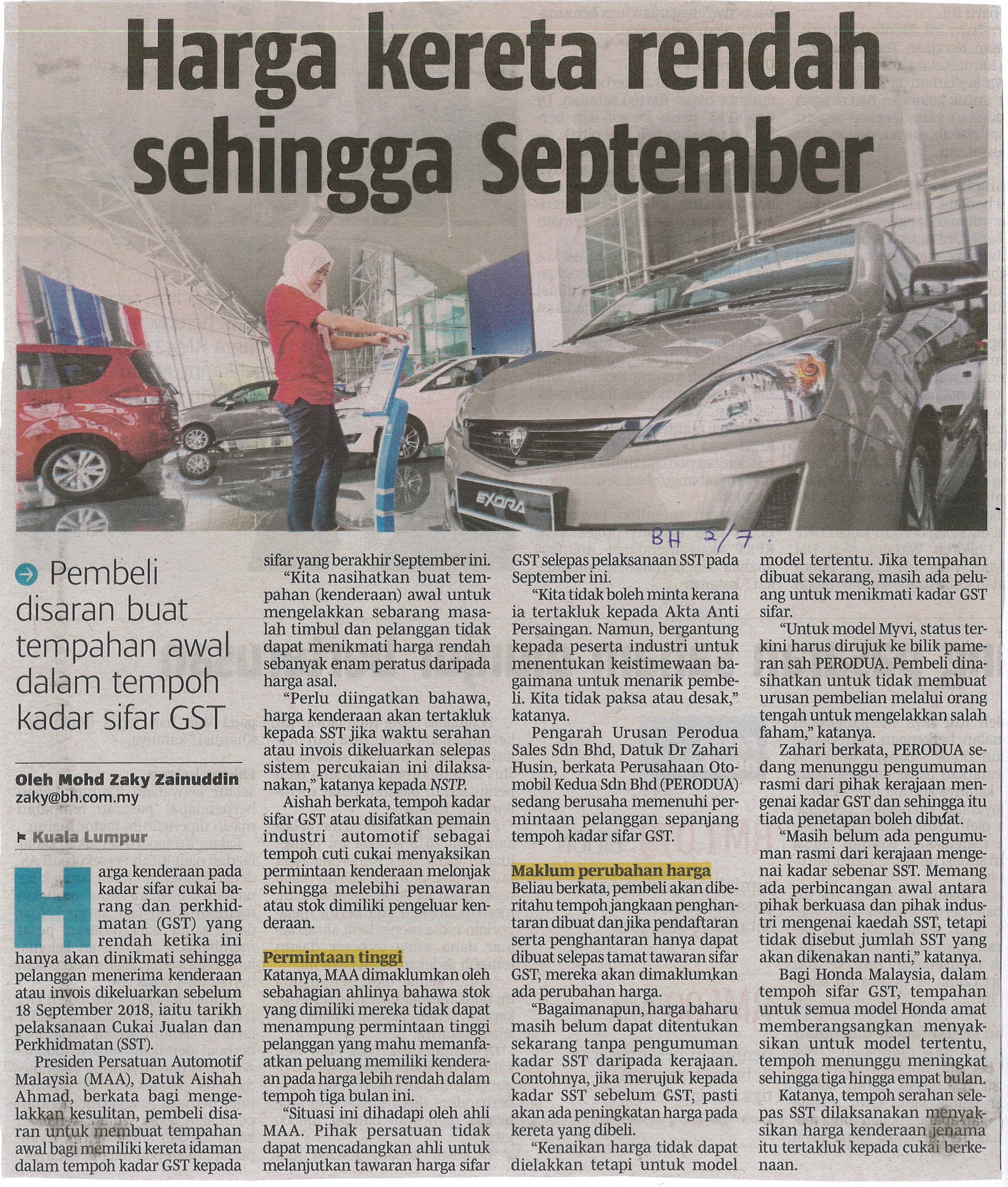 Berita Harian - Harga Kereta Rendah Sehingga September |