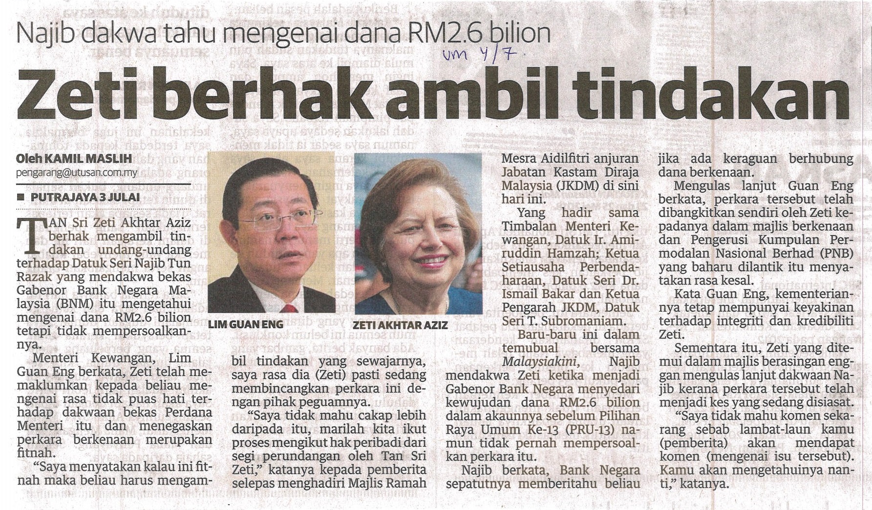 Utusan Malaysia - Zeti Berhak Ambil Tindakan |