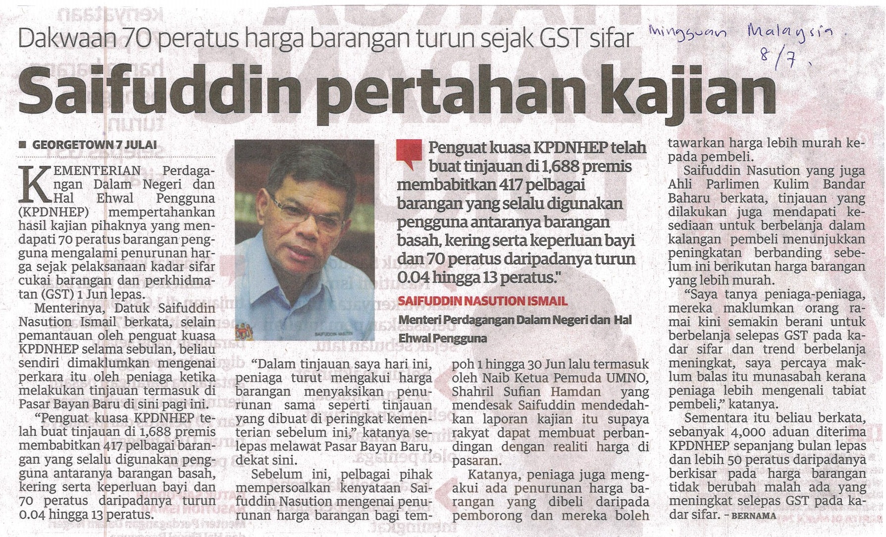 Berita Harian - Buktikan SST Turunkan Harga Barang