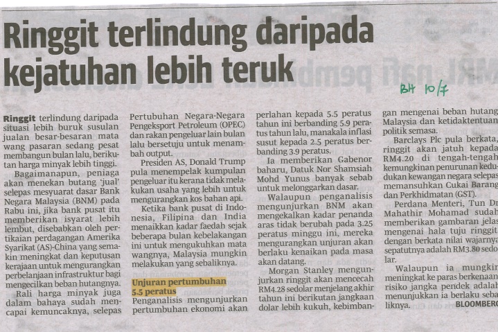 Berita Harian - Ringgit Terlindung Daripada Kejatuhan Lebih Teruk |