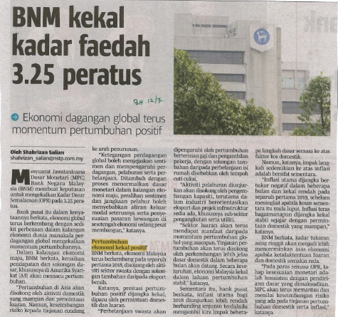 Berita Harian - BNM Kekal Faedah 3.25 Peratus |