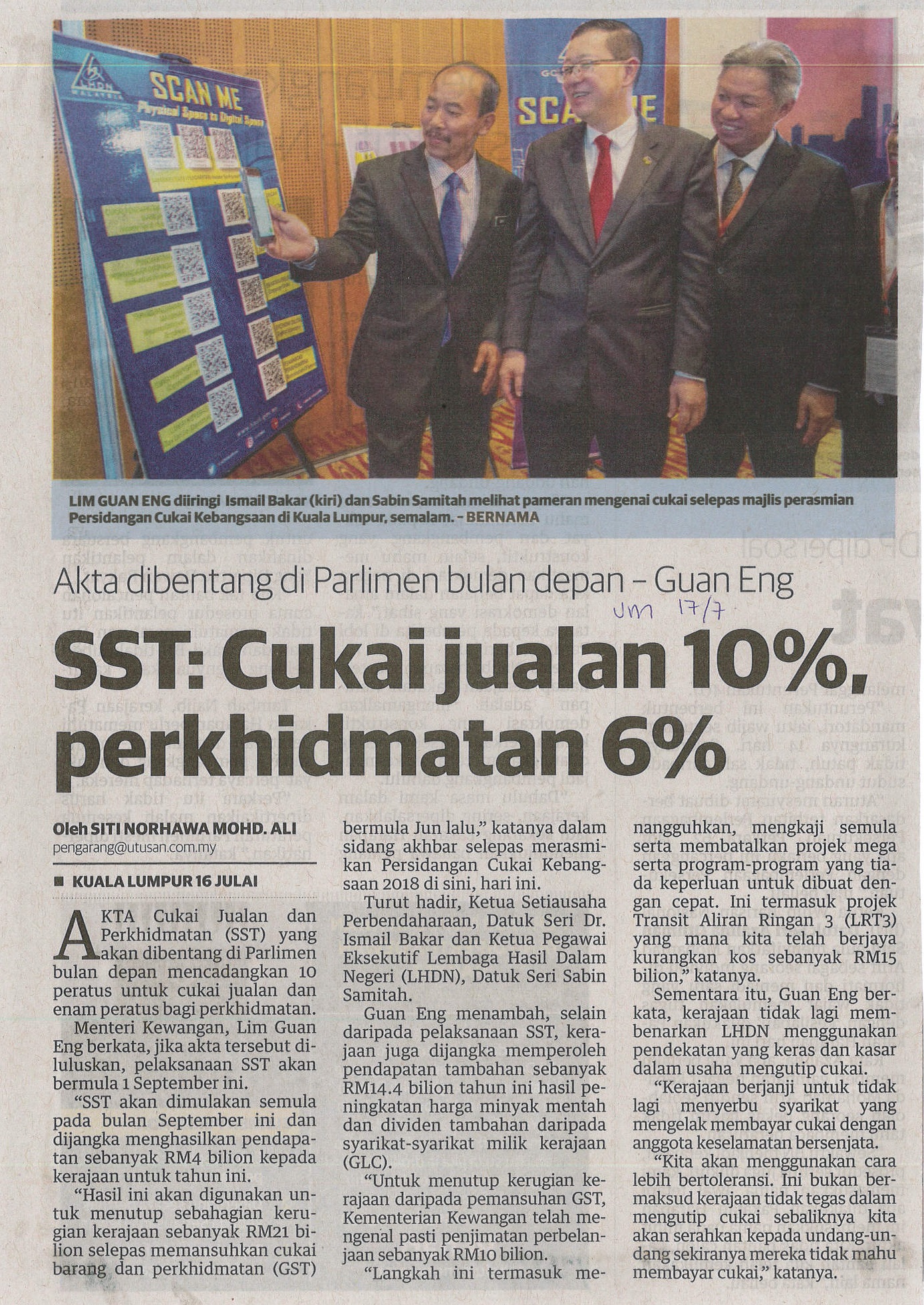 Utusan Malaysia - SST: Cukai Jualan 10%, Perkhidmatan 6% |