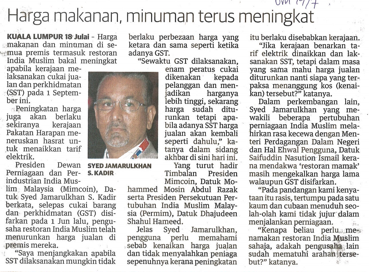 Utusan Malaysia - Harga Makanan, Minuman Terus Meningkat |