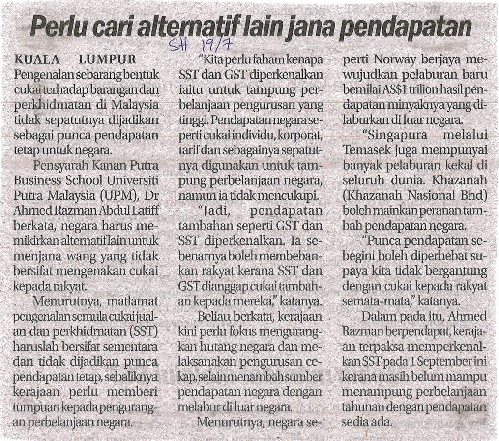 Sinar Harian - Perlu Cari Alternatif Lain Jana Pendapatan |