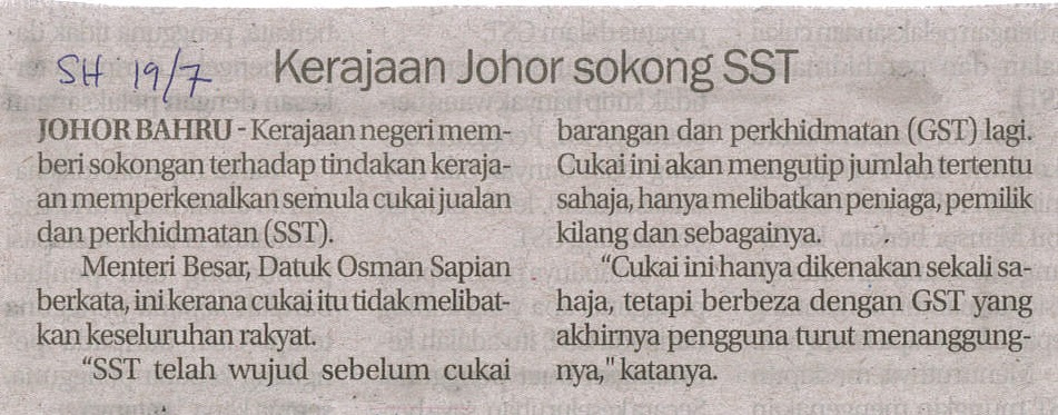 Sinar Harian - Kerajaan Perlu Jelaskan Skop Liputan SST
