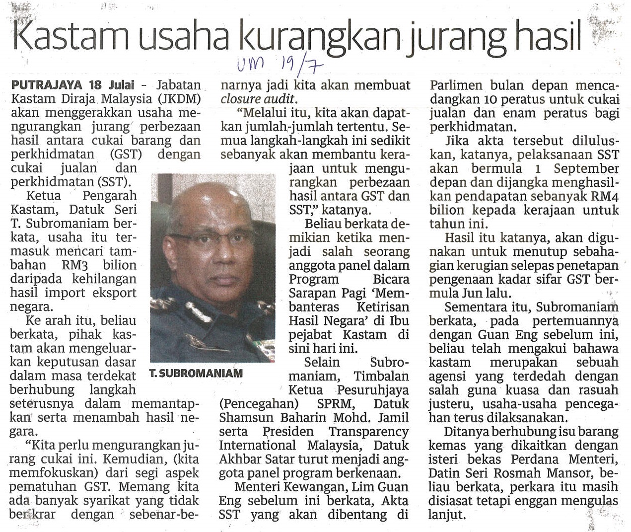 Utusan Malaysia - Kastam Usaha Kurangkan Jurang Hasil |