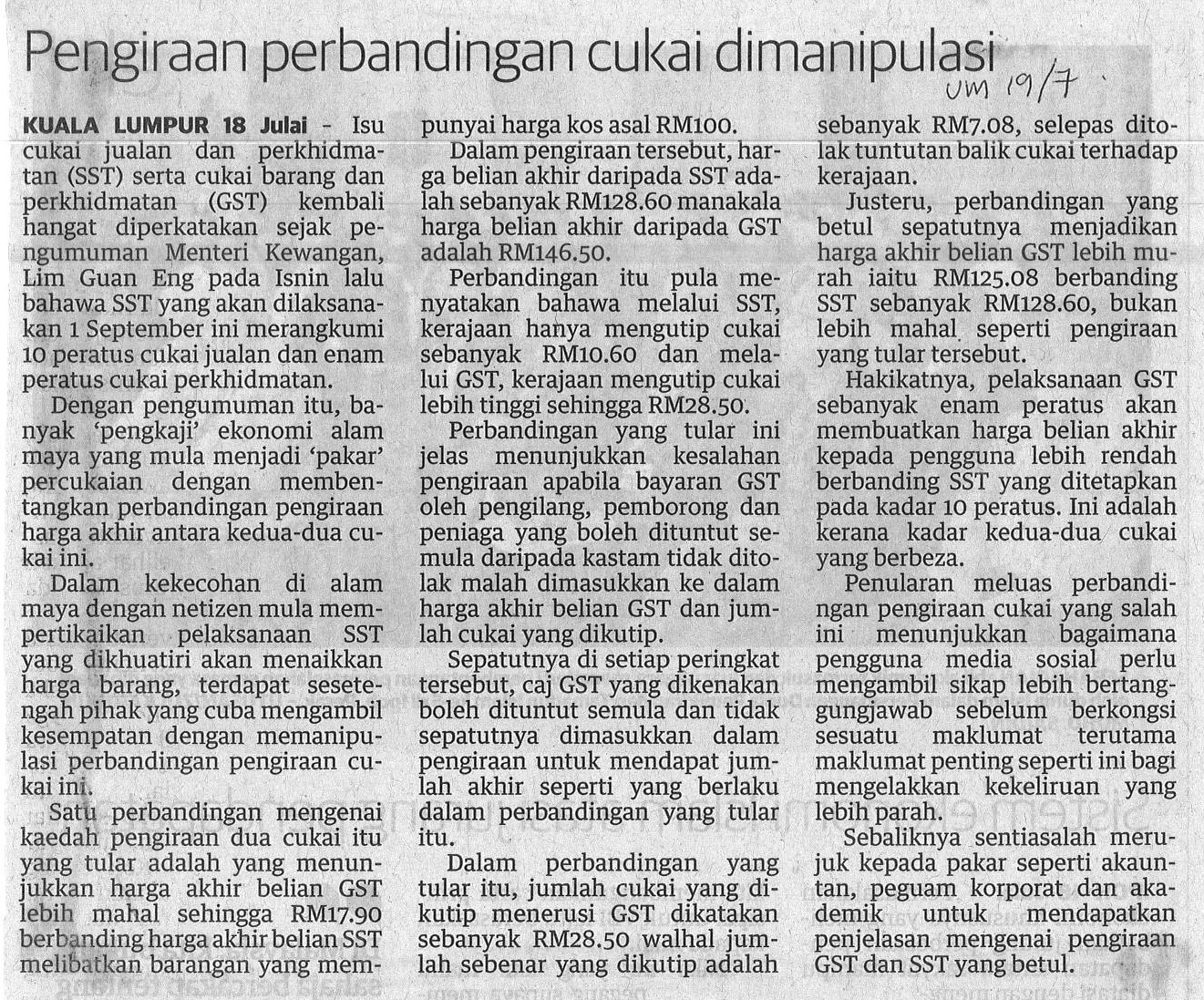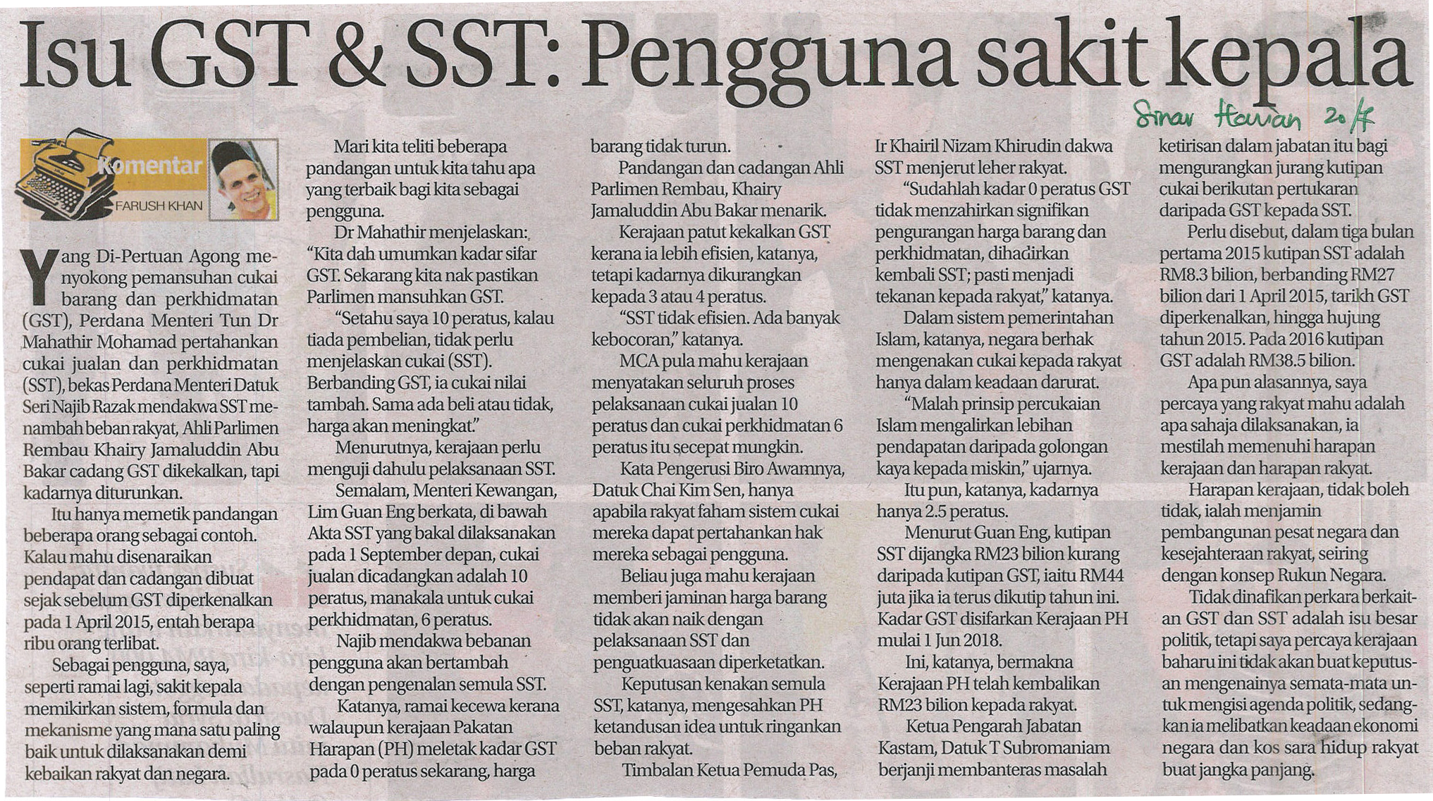 Sinar Harian - Isu GST & SST: Pengguna Sakit Kepala