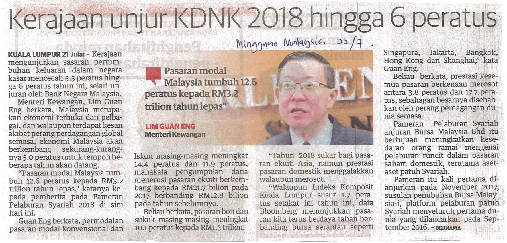 Mingguan Malaysia - Kerajaan Unjur KDNK 2018 Hingga 6 Peratus
