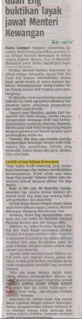 Berita Harian - Guan Eng Buktikan Layak Jawat Menteri Kewangan