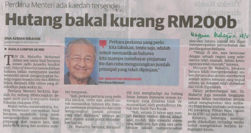 Mingguan Malaysia - Hutang Bakal Kurang RM200b