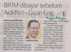 Mingguan Malaysia - BR1M Dibayar Sebelum Aidilfitri - Guan Eng