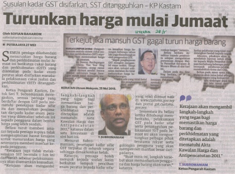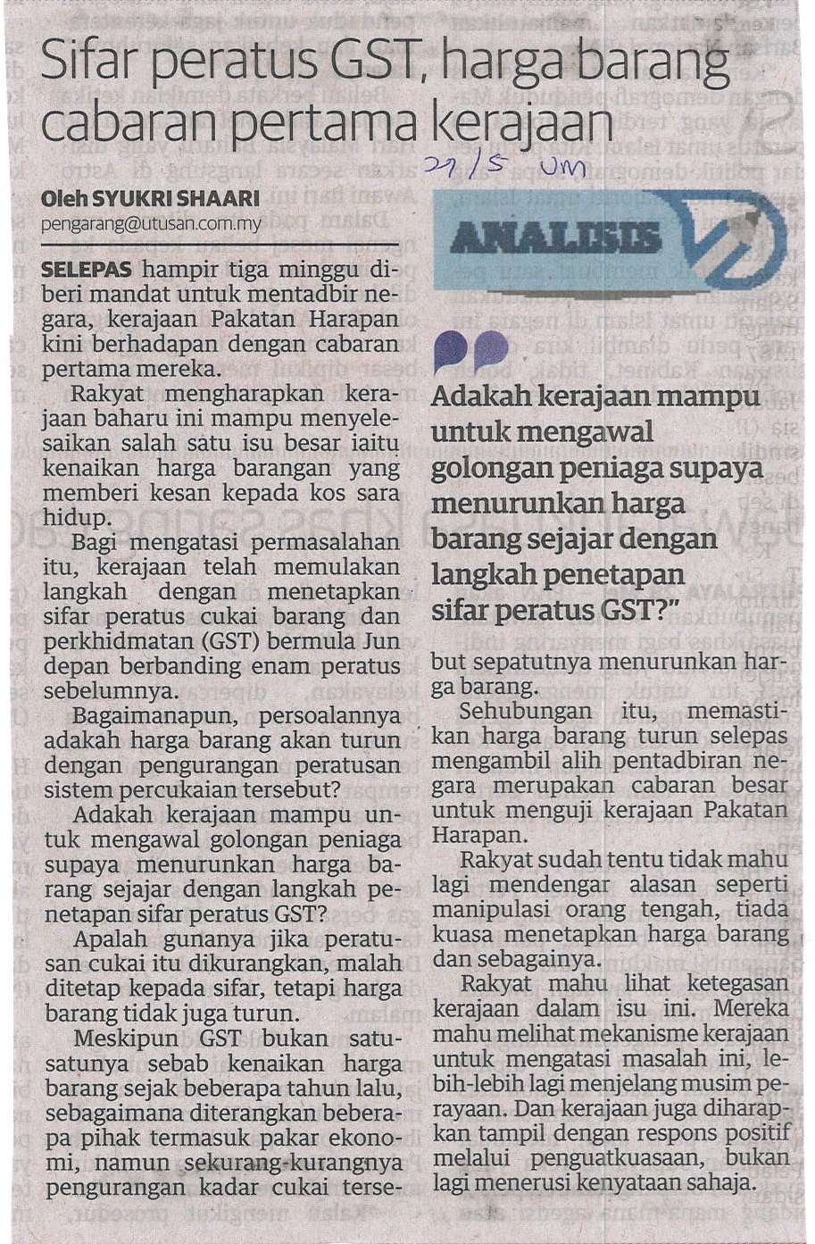 Utusan Malaysia - Sifar Peratus GST, Harga Barang Cabaran Pertama Kerajaan