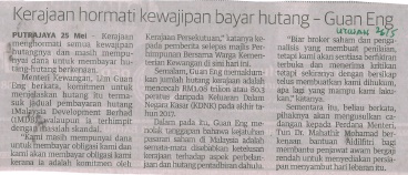 Utusan Malaysia - Kerajaan Hormati Kewajipan Bayar Hutang - Guan Eng