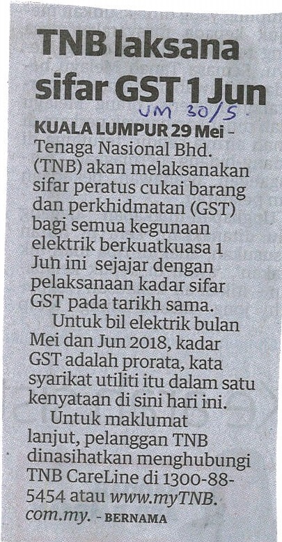 Utusan Malaysia - TNB Laksana Sifar GST 1 Jun