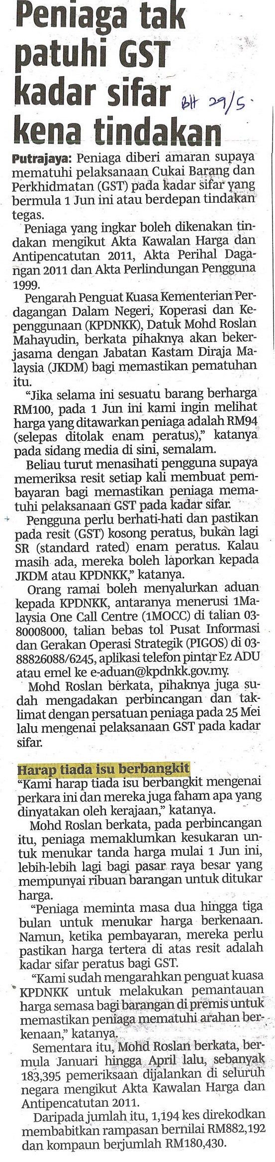 Berita Harian - Peniaga Tak Patuhi GST Kadar Sifar Kena Tindakan