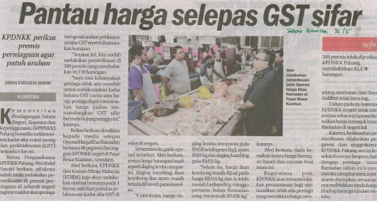 Sinar Harian - Pantau Harga Selepas GST Sifar