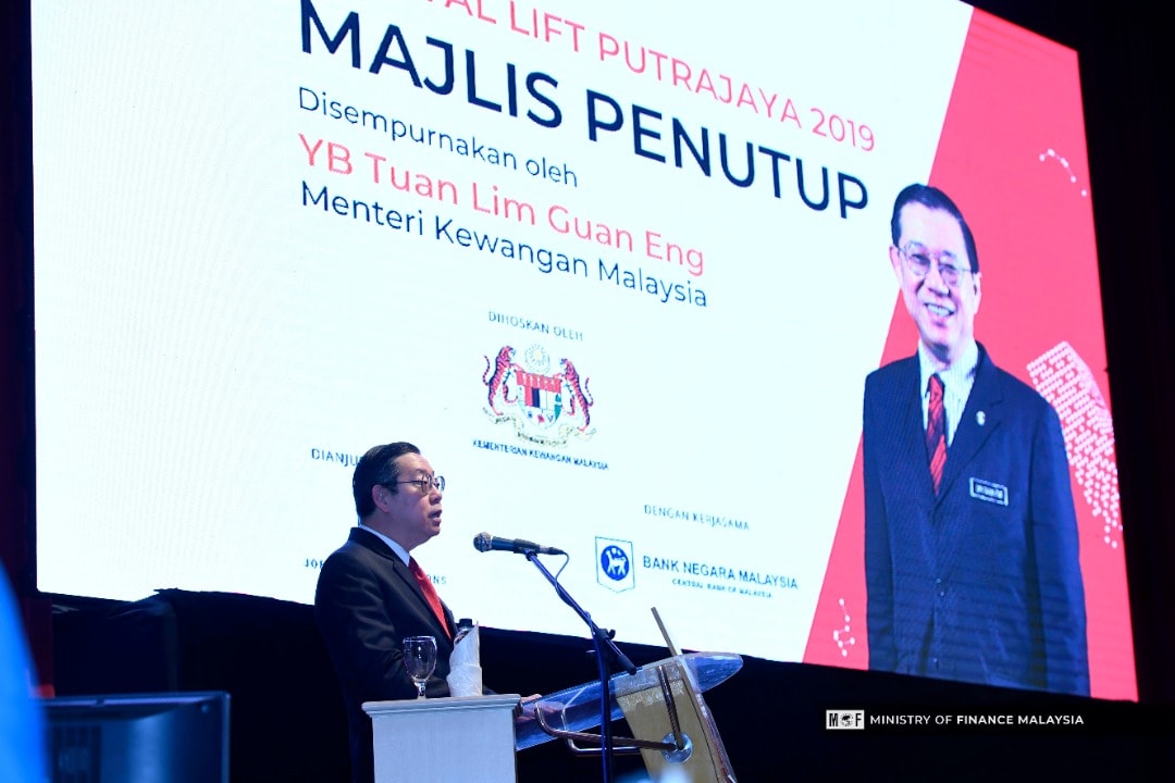 YB Menteri Kewangan, Tuan Lim Guan Eng telah menyampaikan ucaptama bagi Majlis Penutup Festival LIFT Putrajaya 2019 yang turut dihadiri YBhg. Ketua Setiausaha Perbendaharaan, Tan Sri Ahmad Badri Mohd Zahir dan YBrs. Penolong Gabenor Bank Negara Malaysia, Encik Aznan Abdul Aziz di Kompleks Kementerian Kewangan Malaysia.
