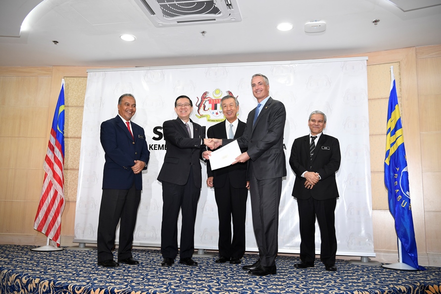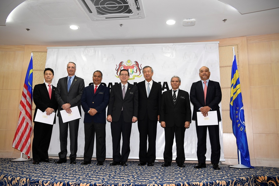 YB Menteri Kewangan, Tuan Lim Guan Eng telah menyerahkan Surat Pelantikan Rasmi Bank Pengatur Utama Bagi Penerbitan Bon kepada Mizuho Bank (Malaysia) Berhad, HSBC Bank Malaysia Berhad & Daiwa Markets Singapore Limited dengan kerjasama Affin Hwang Investment Bank di Kompleks Kementerian Kewangan Malaysia.