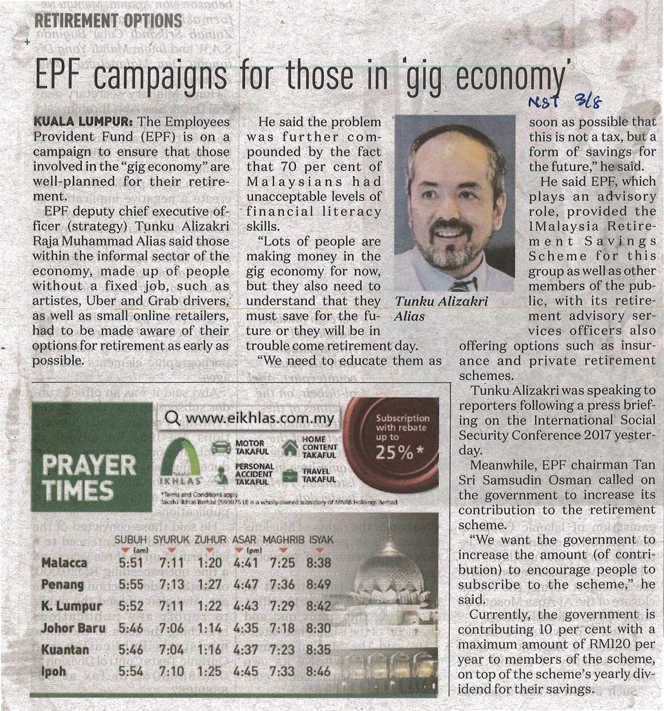 New Straits Times - EPF Campaigns For Those In 'Gig Economy' |
