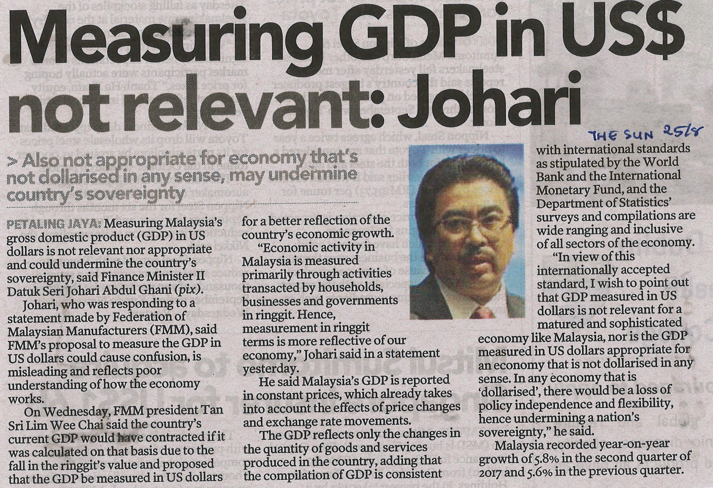 The Sun - Measuring GDP in US$ Not Relevant:Johari |