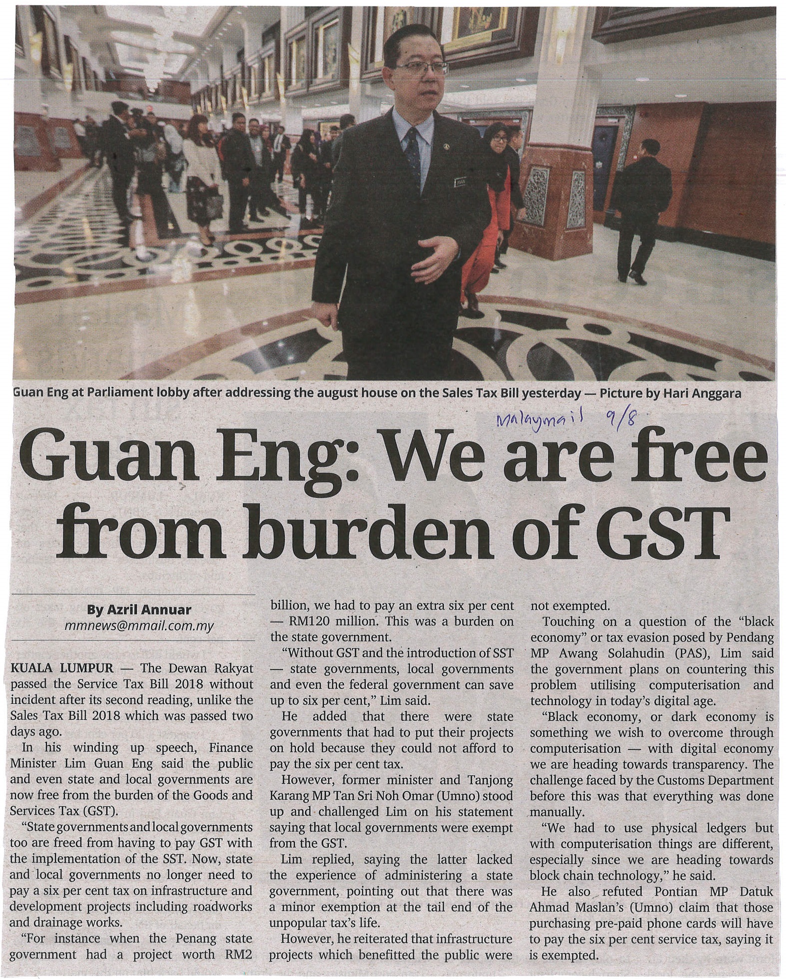 Malay Mail - Deficit Imminent If SST Bill Blocked |