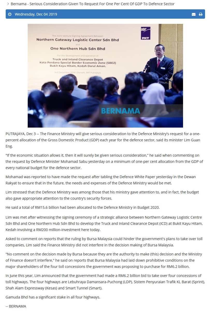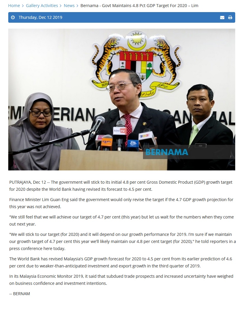 Bernama - Govt Maintains 4.8 Pct GDP Target For 2020 – Lim |