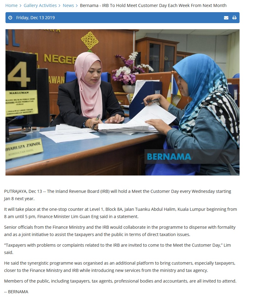 Bernama - IRB To Hold Meet Customer Day Each Week From Next Month |