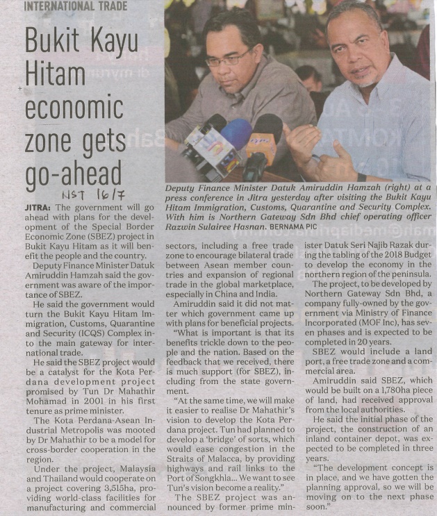 New Strait Times - Bukit Kayu Hitam Economic Zone Gets Go-Ahead |