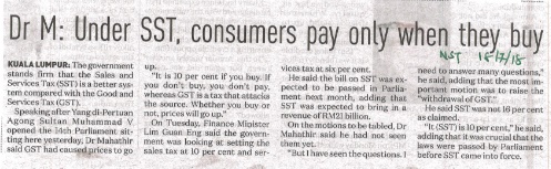 New Strait Times - Dr M: Under SST, Customers Pay Only When They Buy |