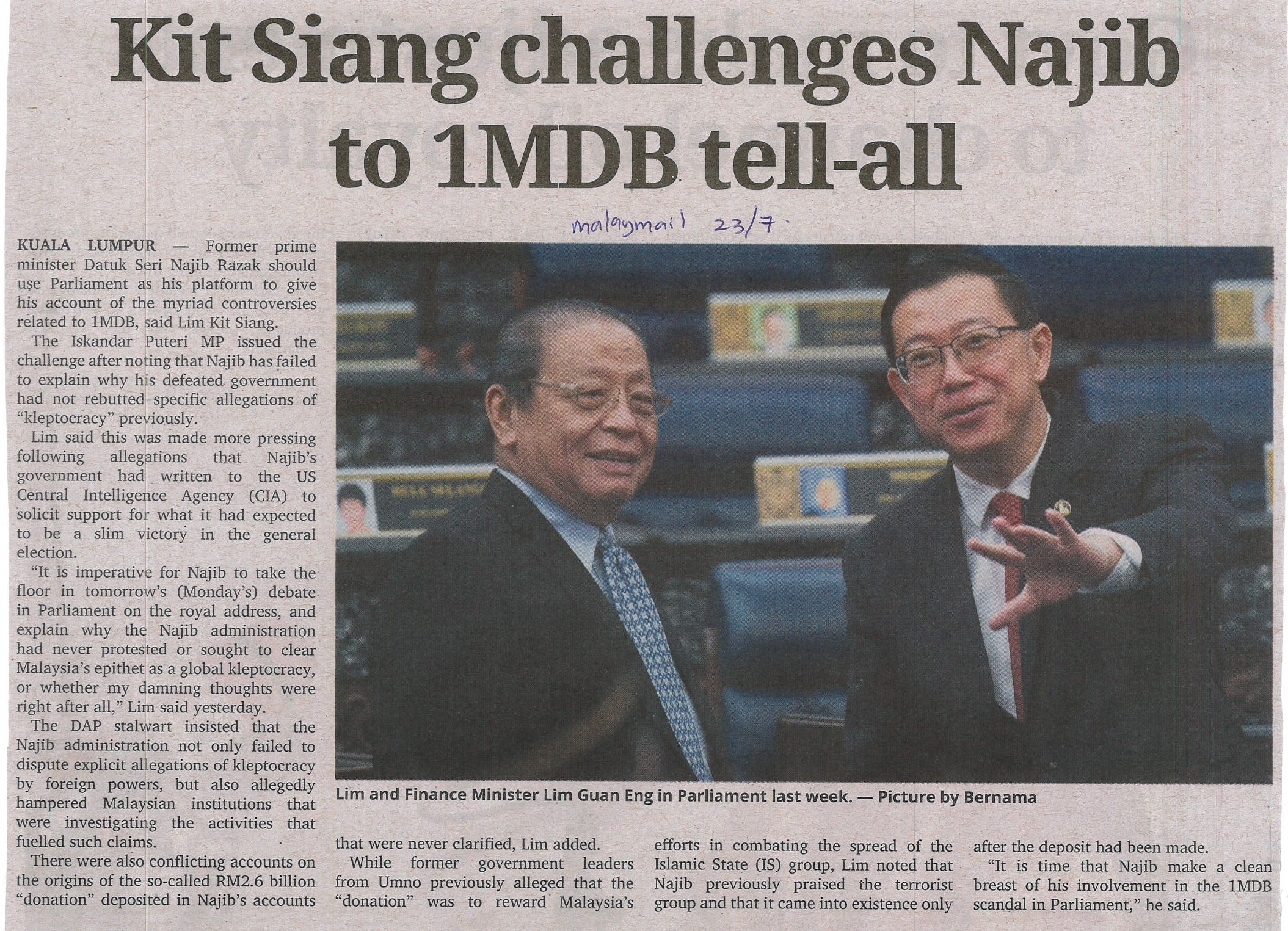 Malay Mail - Kit Siang Challenges Najib To 1MDB Tell-All