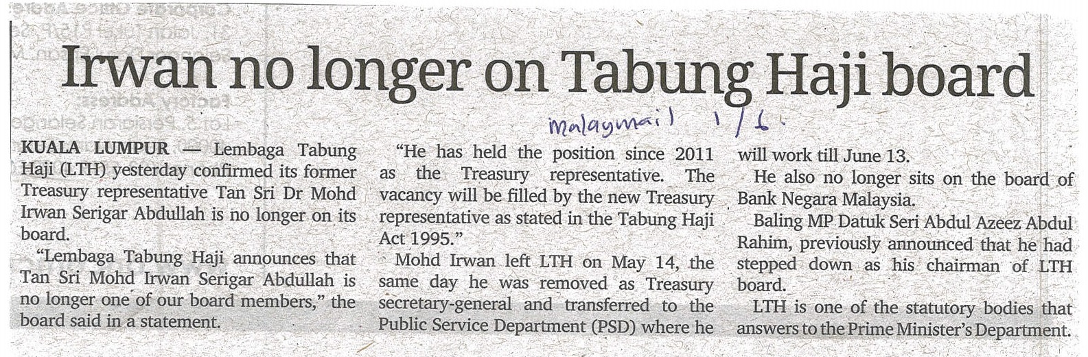 Malay Mail - Irwan No Longer On Tabung Haji Board |