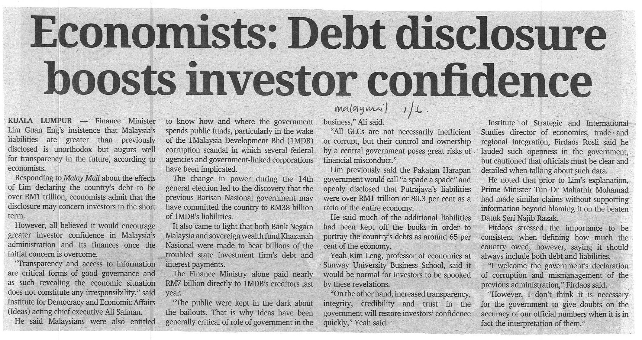 Malay Mail - Economists: Debt Disclosure Boosts Investor Confidence |