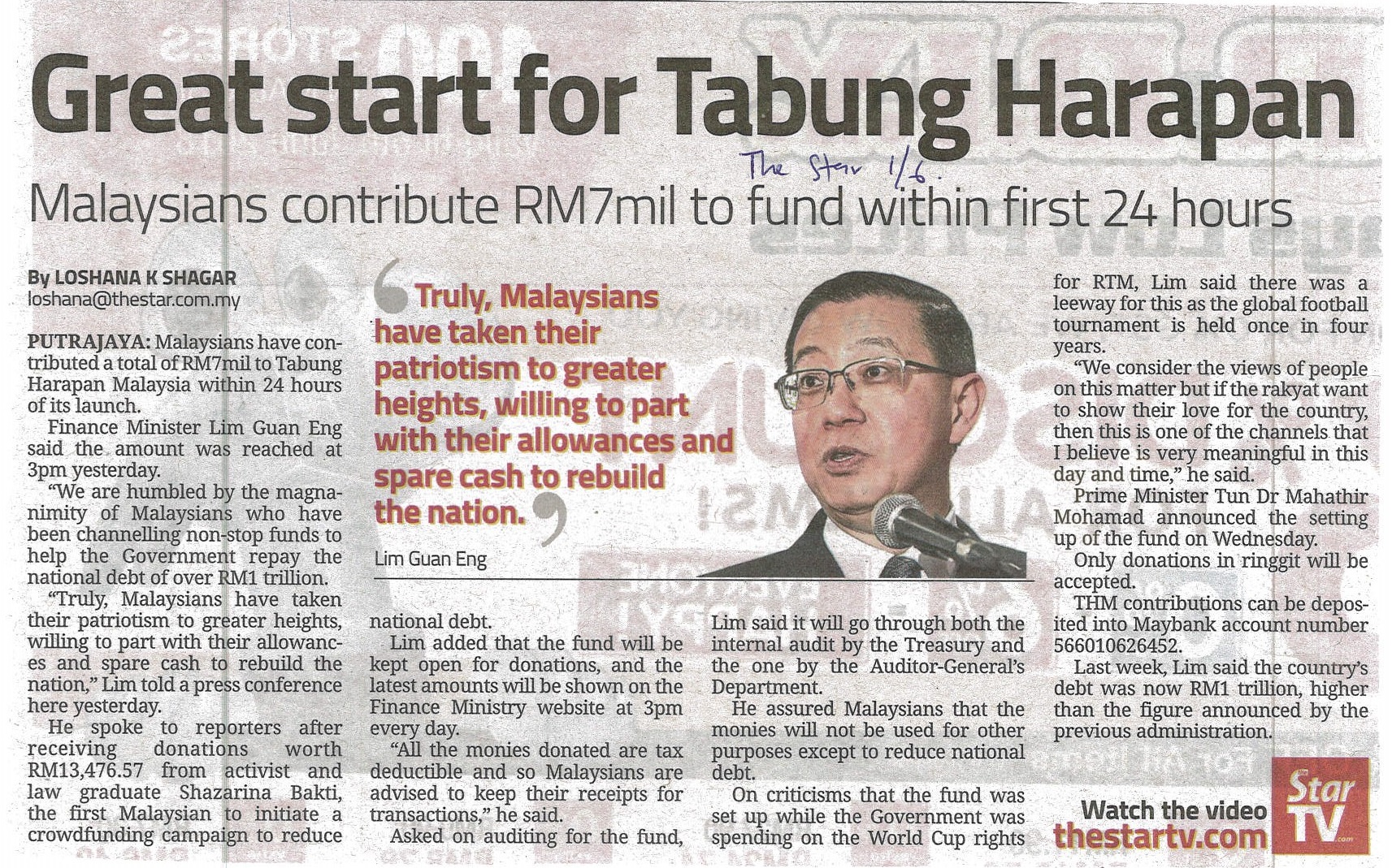 The New Straits Times - Tabung Harapan Malaysia Touches RM61.3m |