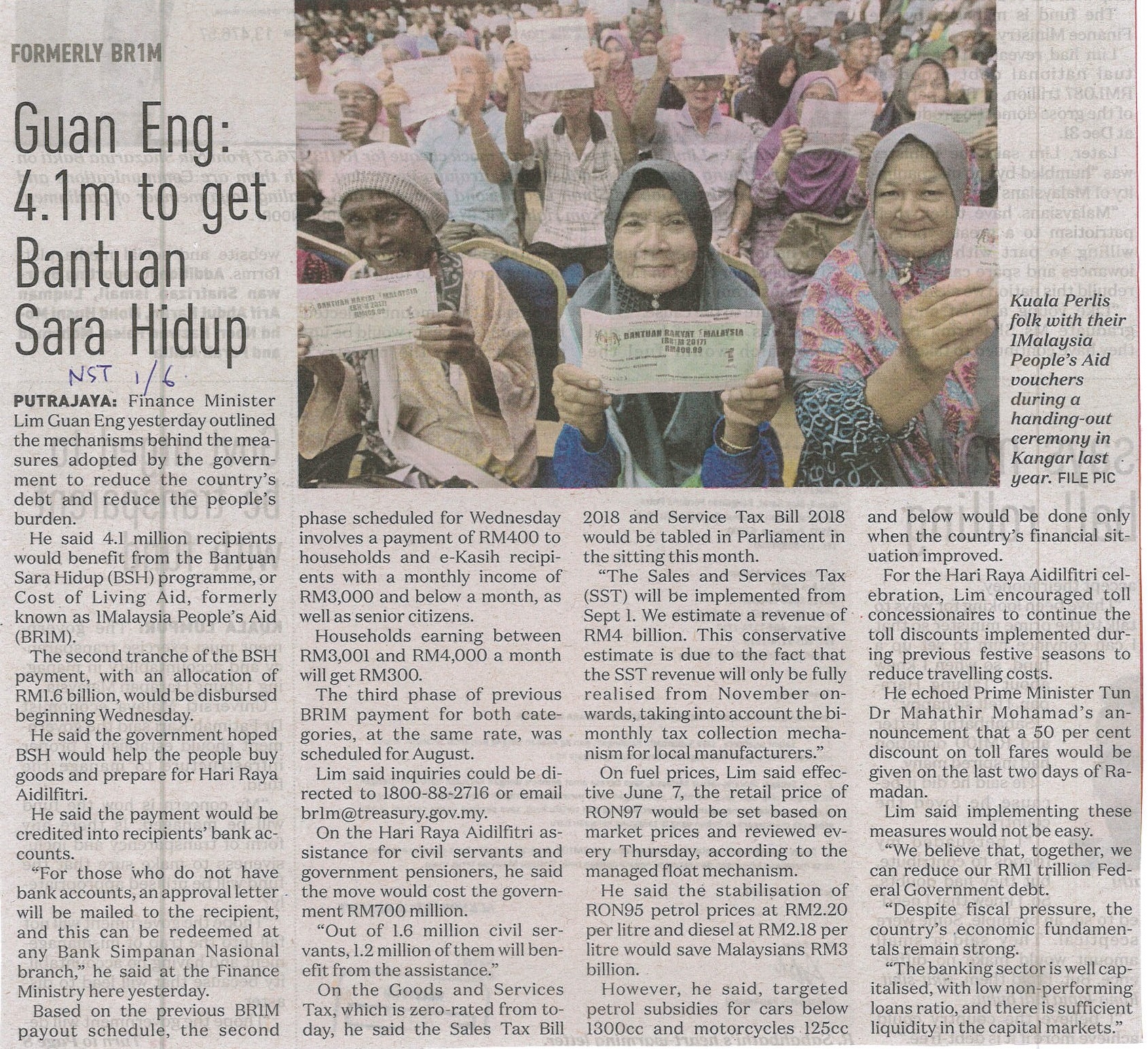 New Strait Times - Guan Eng: 4.1m To Get Bantuan Sara Hidup |