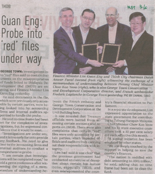 New Strait Times - Guan Eng: Probe Into 'Red' Files Under Way |