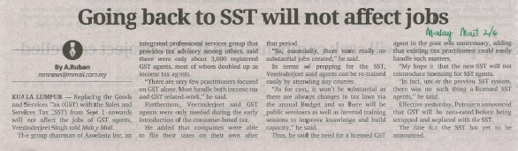 Malay Mail - Going Back To SST Will Not Affect Jobs |