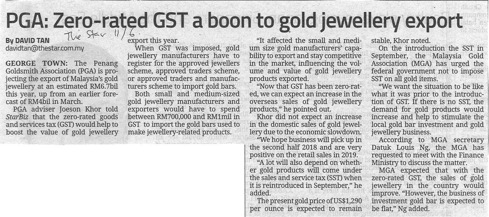 The Star - PGA: Zero-Rated GST A Boon To Gold Jewellery Export |