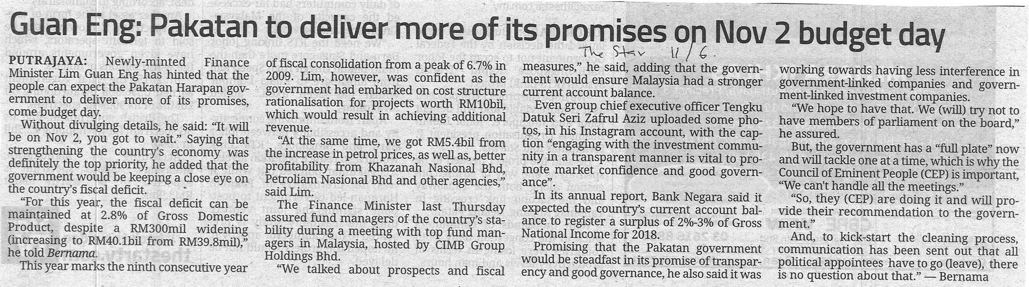 The Star - Guan Eng: Pakatan To Deliver More Of Its Promises On Nov 2 Budget Day |