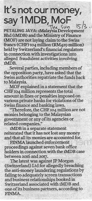 The Sun - It's Not Our Money, Say 1MDB, MoF |