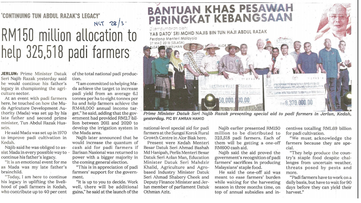 New Straits Times - RM150 Million Allocation To Help 325,518 Padi Farmers |