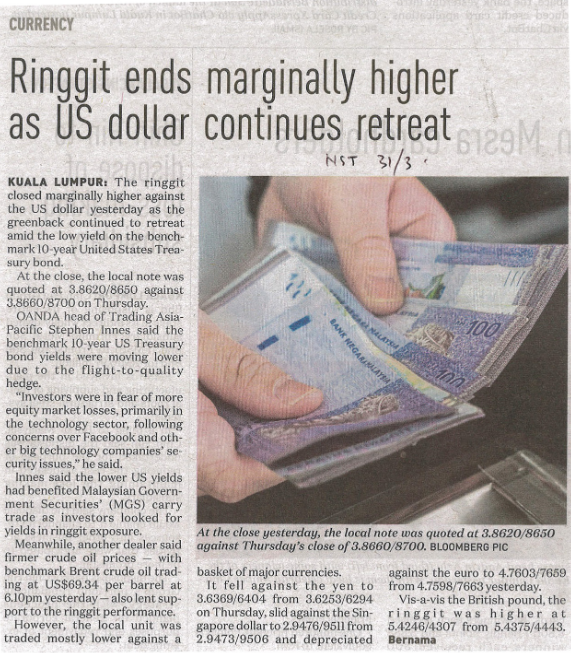 New Strait Times - Ringgit Ends Marginally Higher as US Dollar Continues Retreat |