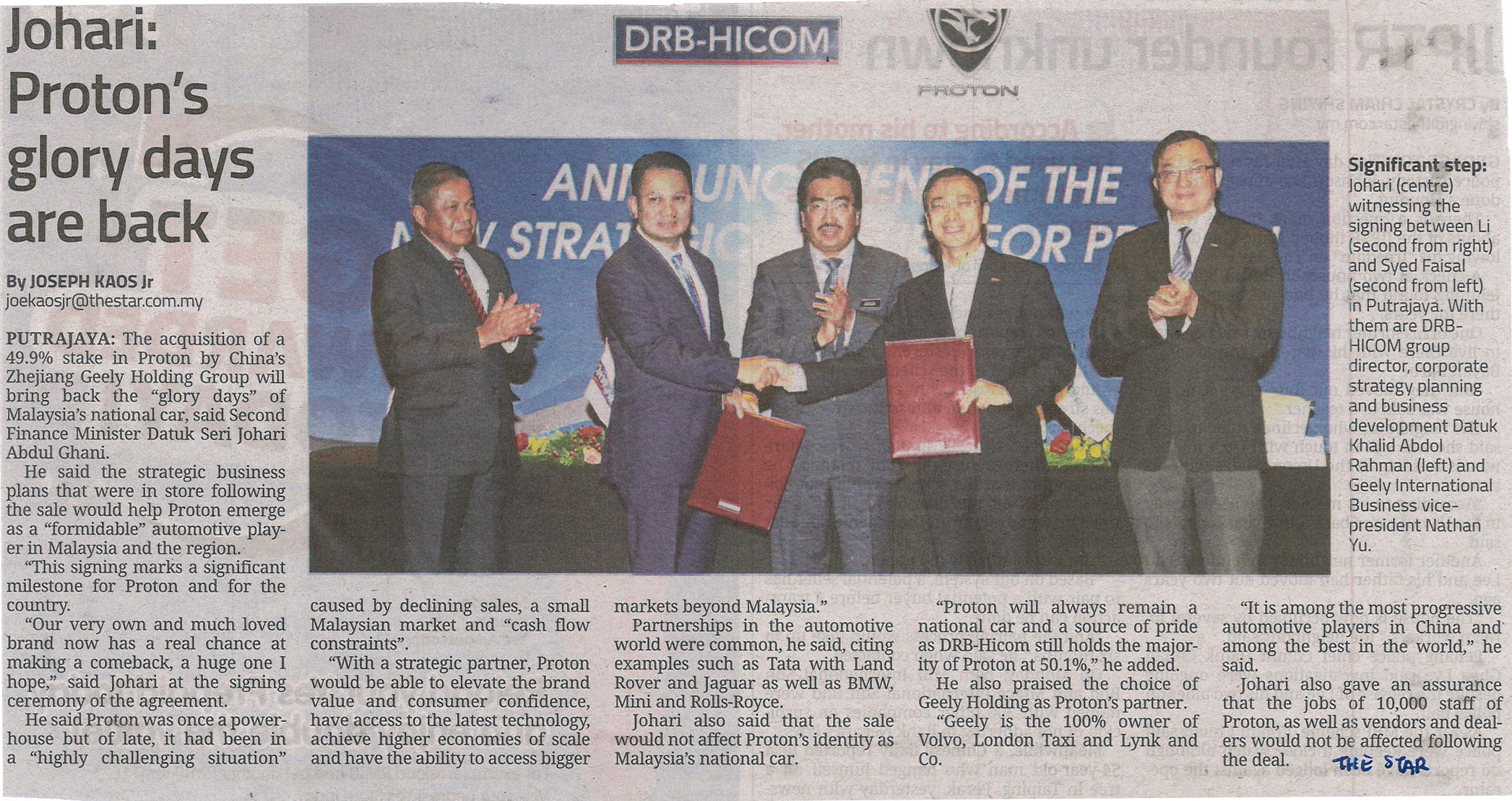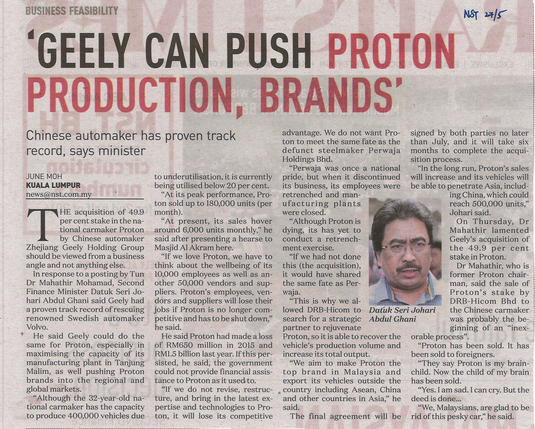New Strait Times - Geely Can Push Proton Production, Brands' |