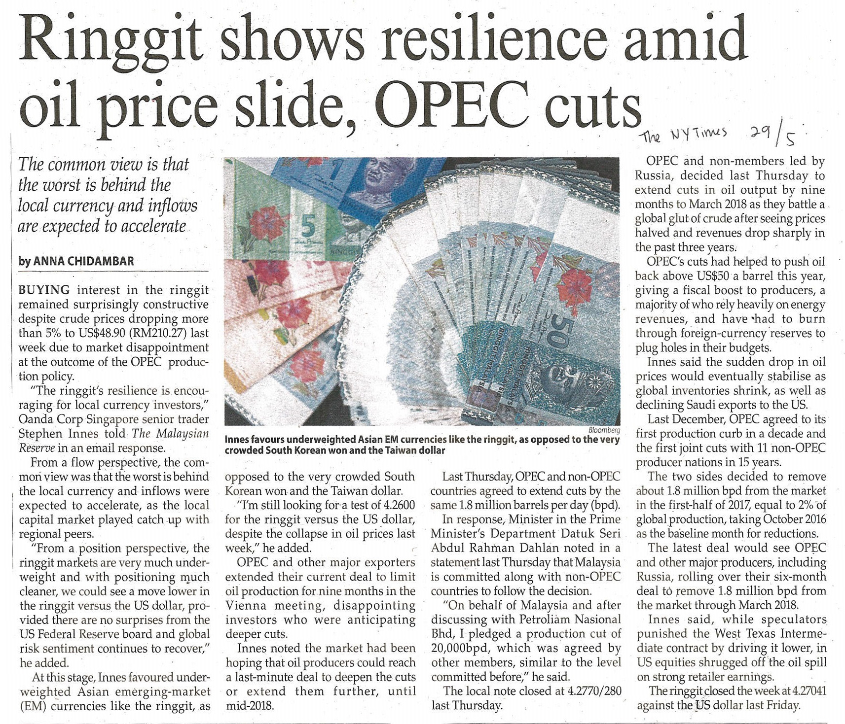 The New York Times - Ringgit Shows Resilience Amid Oil Price Slide, OPEC Cuts |