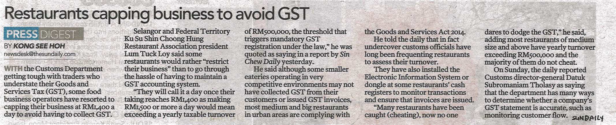 Sun Daily - Restaurants Capping Business To Avoid GST |