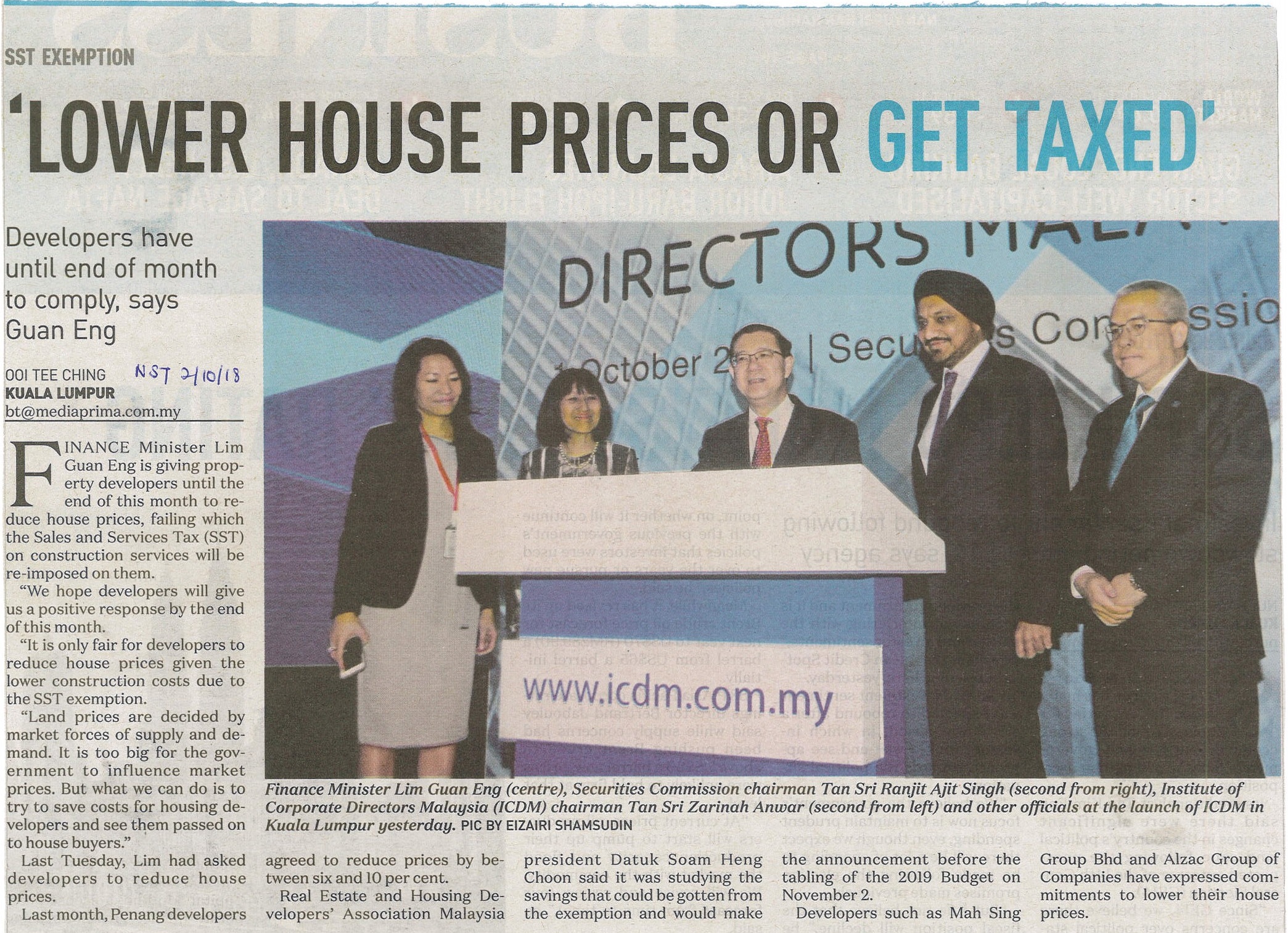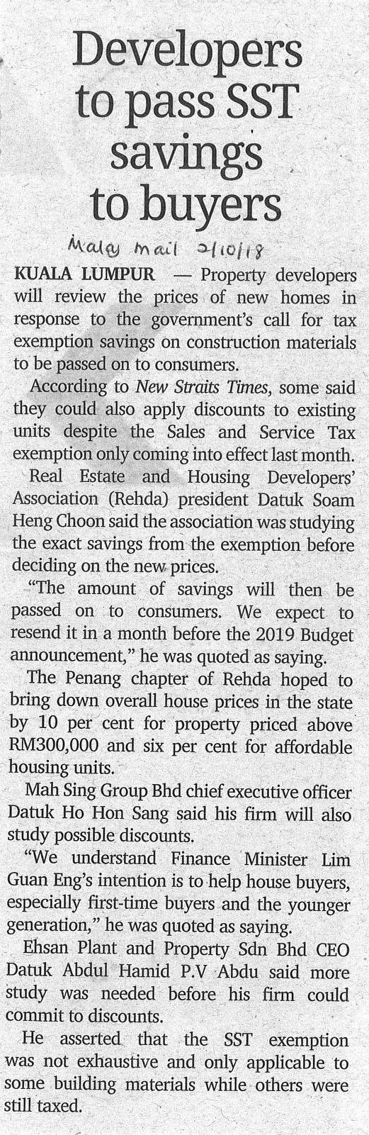 Malay Mail - Developers To Pass SST Savings To Buyers |