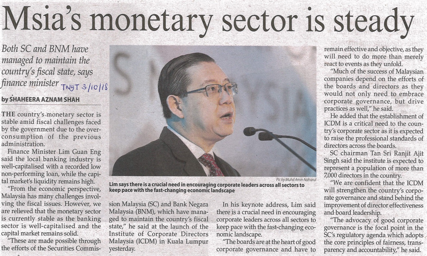 The New Straits Times - Msia's Monetary Sector Is Steady |