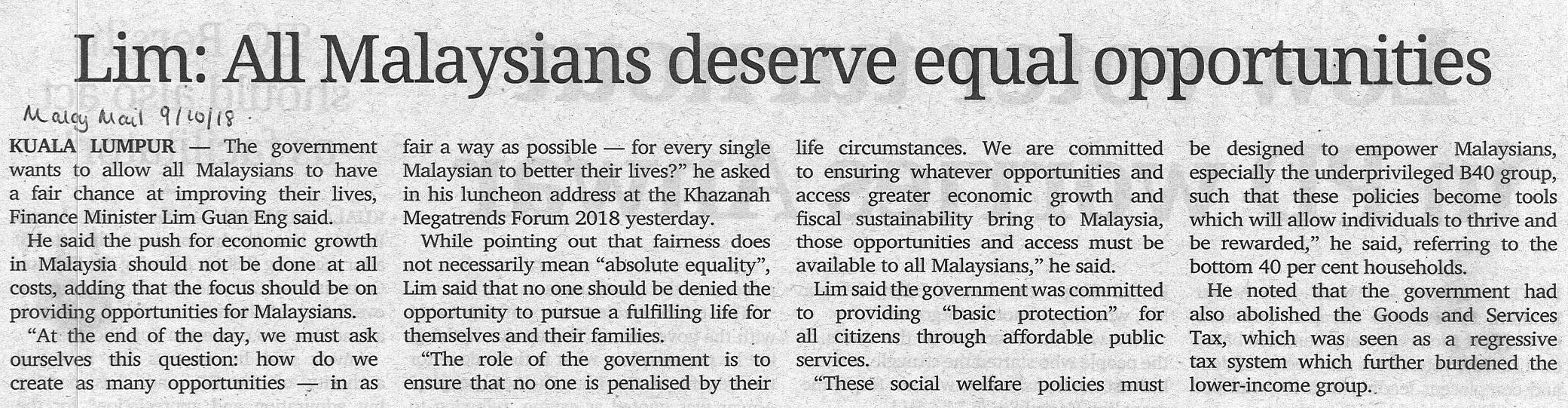 Malay Mail - Lim: All Malaysian Deserve Equal Opportunities |