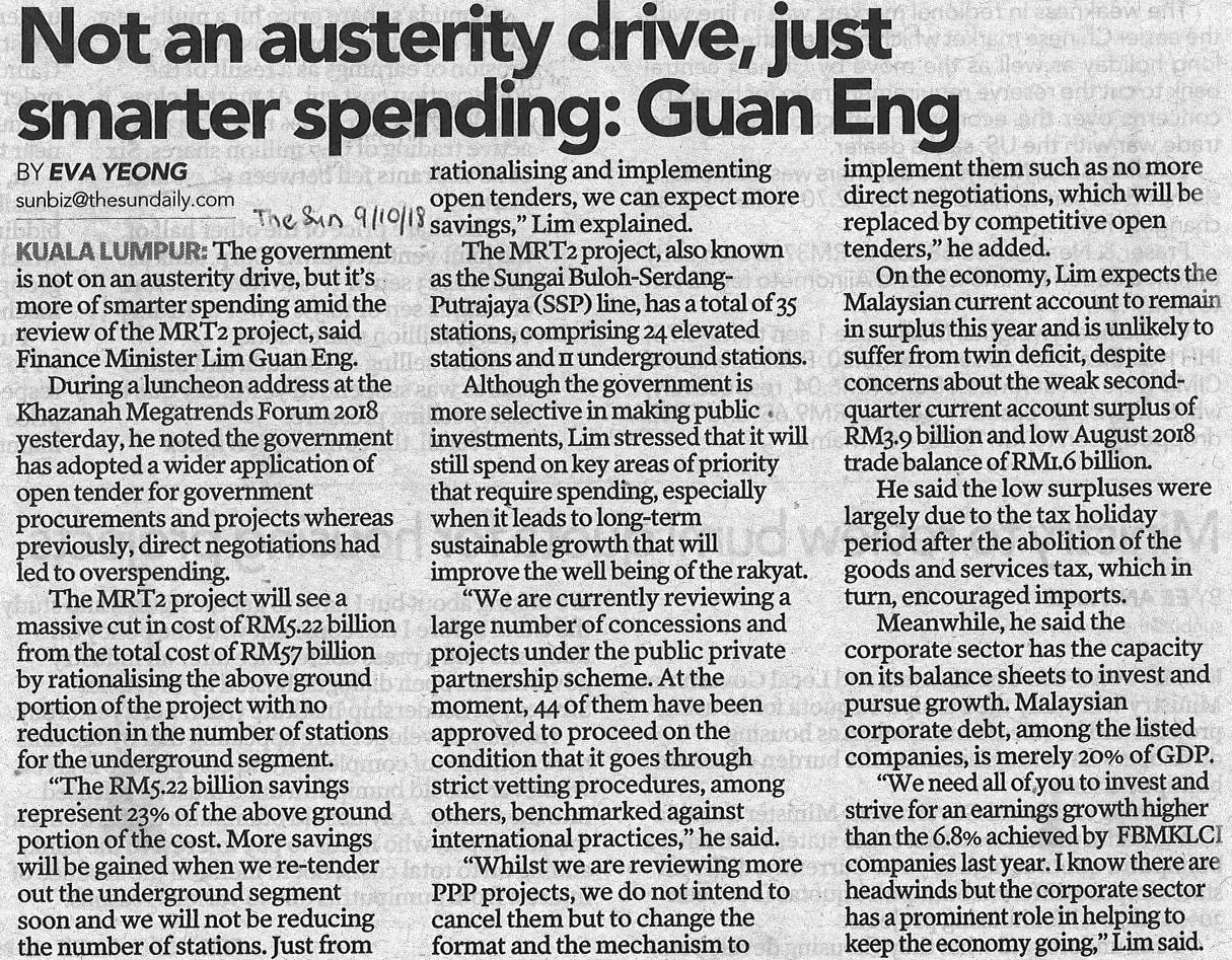 The Sun - Not An Austerity Drive, Just Smarter Spending: Guan Eng |