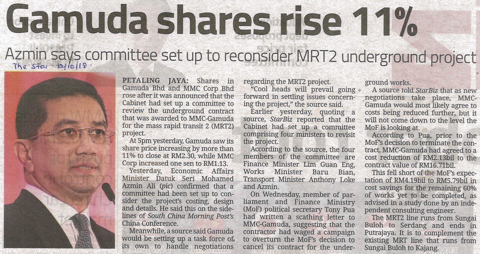 The Malay Mail - Pua : More Oportunities When New Project Awarded At Lower Cost |