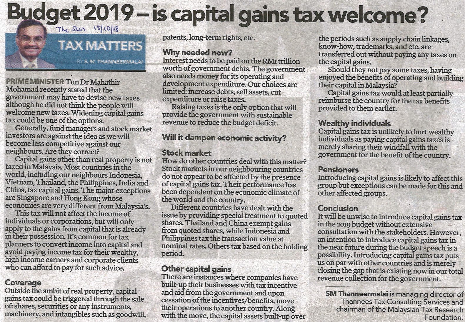 The Sun - Budget 2019 - Is Capital Gains Tax Welcome? |